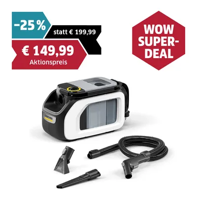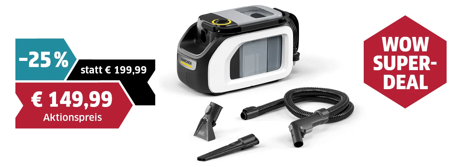 Hartnäckige Flecken auf den Polstern? Kein Problem. Der kompakte Waschsauger sprüht Reinigungsmittel tief in das Gewebe und saugt den Schmutz direkt wieder ab. Dank der schmalen Waschfugendüse erreichst du mühelos selbst die engsten Zwischenräume.
